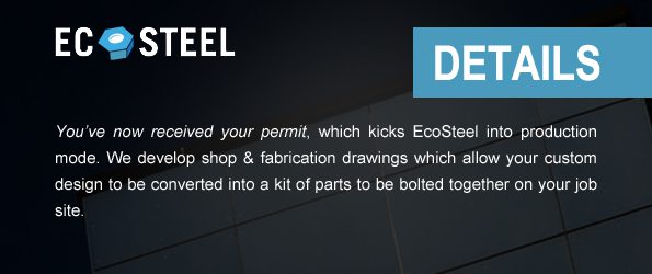 EcoSteel’s prefab construction process begins with 3D Engineering/Modeling and Shop Details. We then produce a pre-fabricated kit of parts that assembles on site. Our clients benefit by using Prefab technology and readily available materials and labor.
