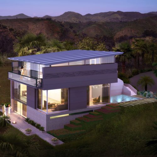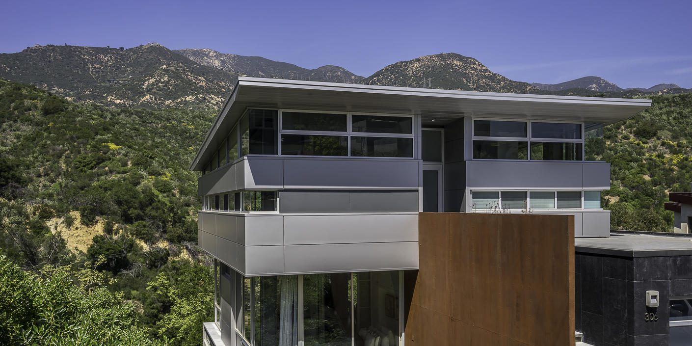 Ultra Modern Prefab Home by Architect Hector Magnus This amazing design expresses the strength and beauty of the all metal and modern fire resistant prefabricated home. EcoSteel Bolted Frame and Custom Roof/Wall & Trim components provide a fire resistant and energy efficient building envelope. Faced with rebuilding after a firestorm that devastated the community, the owner — a well-respected artist…