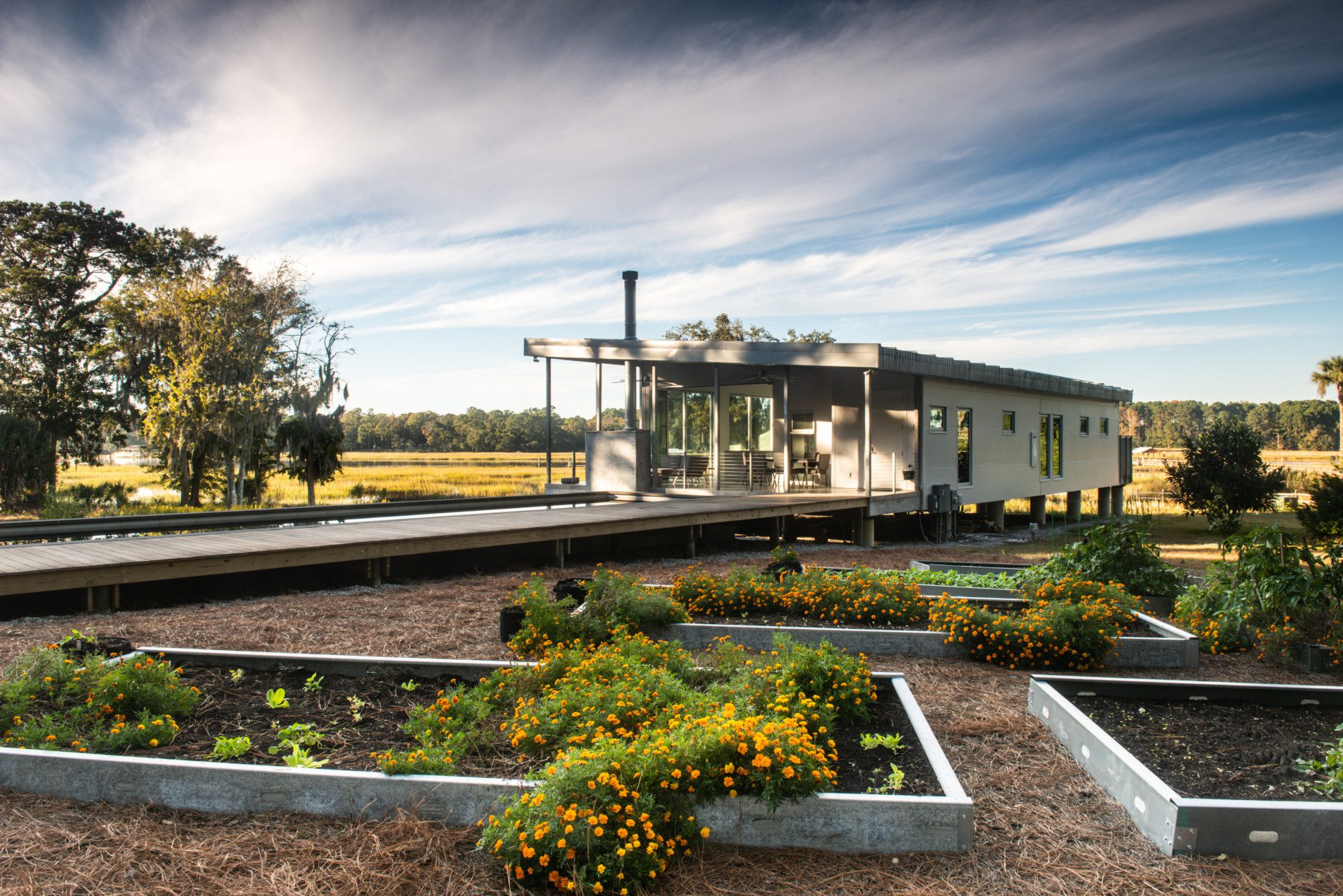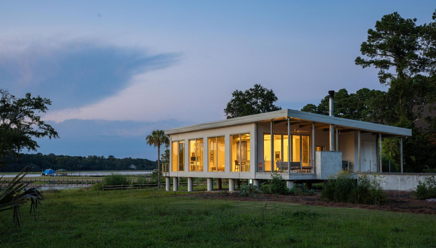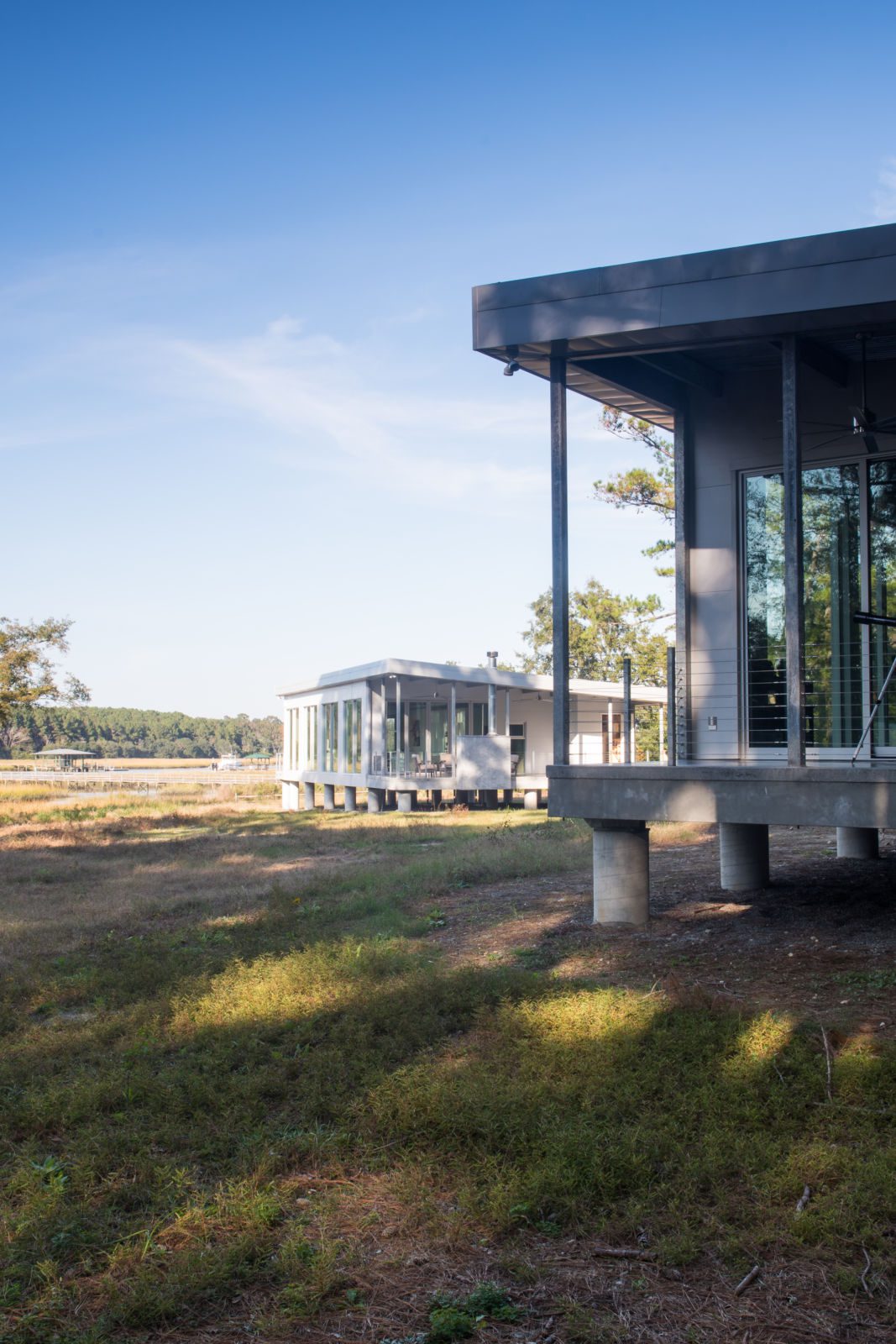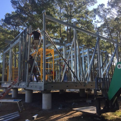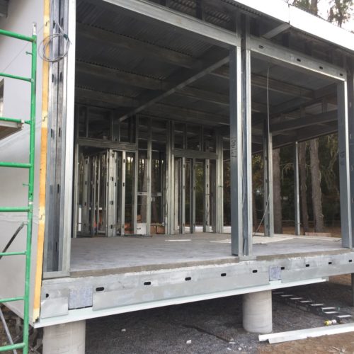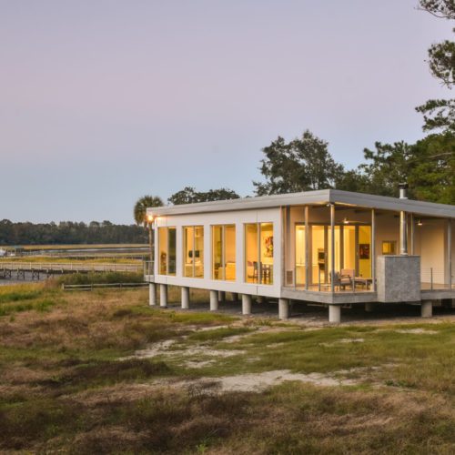 Main House, Guest House + Garage in Charleston, South Carolina on the Waterfront near Kiawah Island. FEMA Flood Zone + Hurricane Rated Custom Home With a growing family, our client reached out to EcoSteel to build a custom prefabricated home that was designed with non-traditional building materials. With the help of Woollen Studios, EcoSteel created an all steel home that…