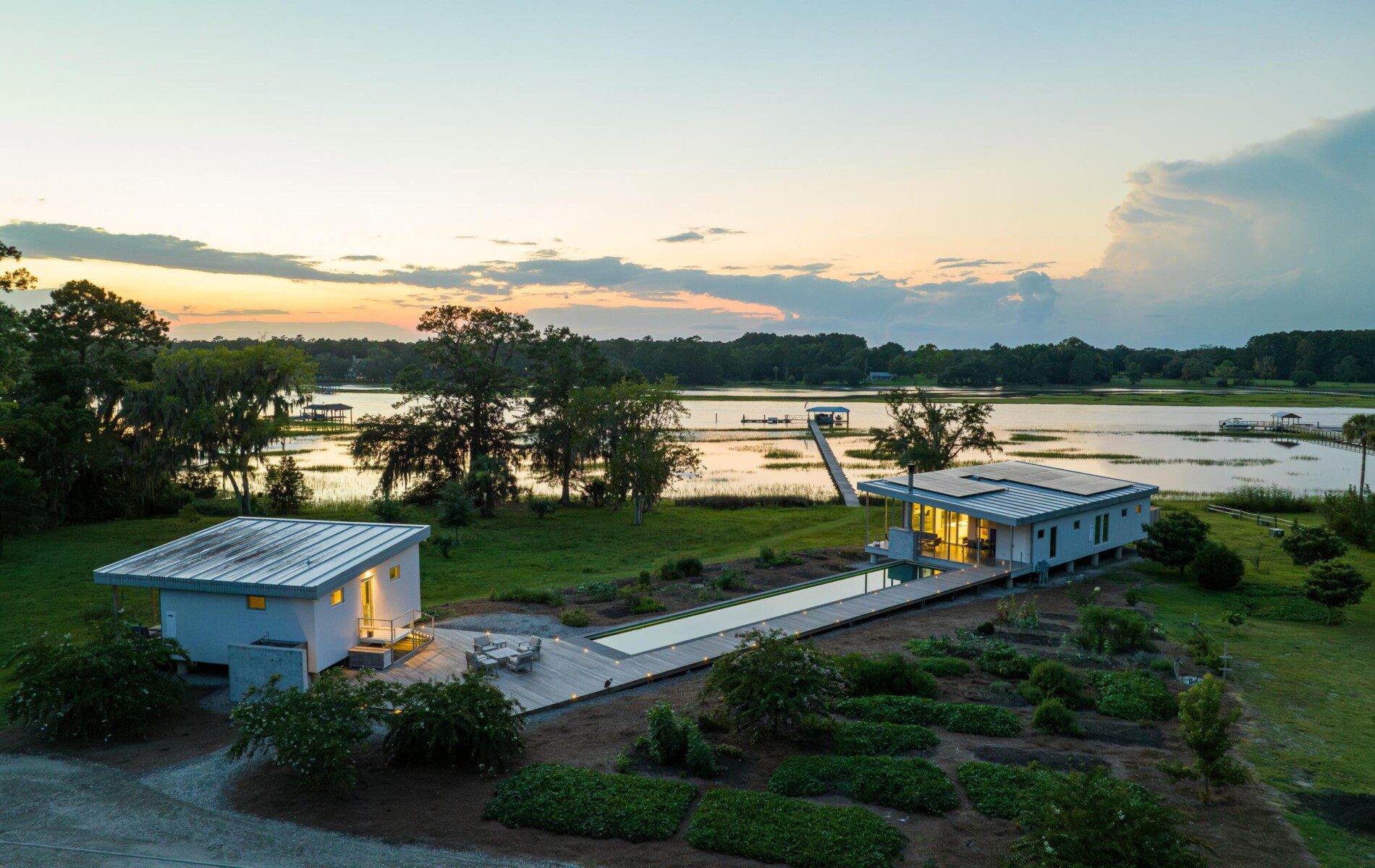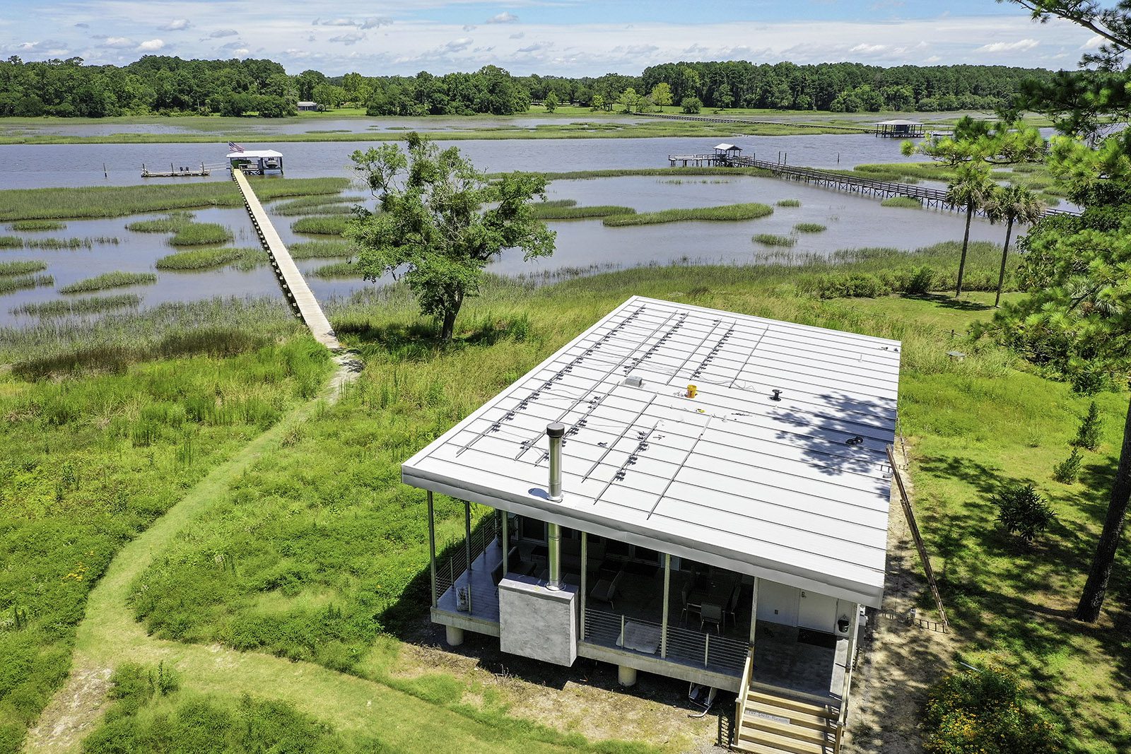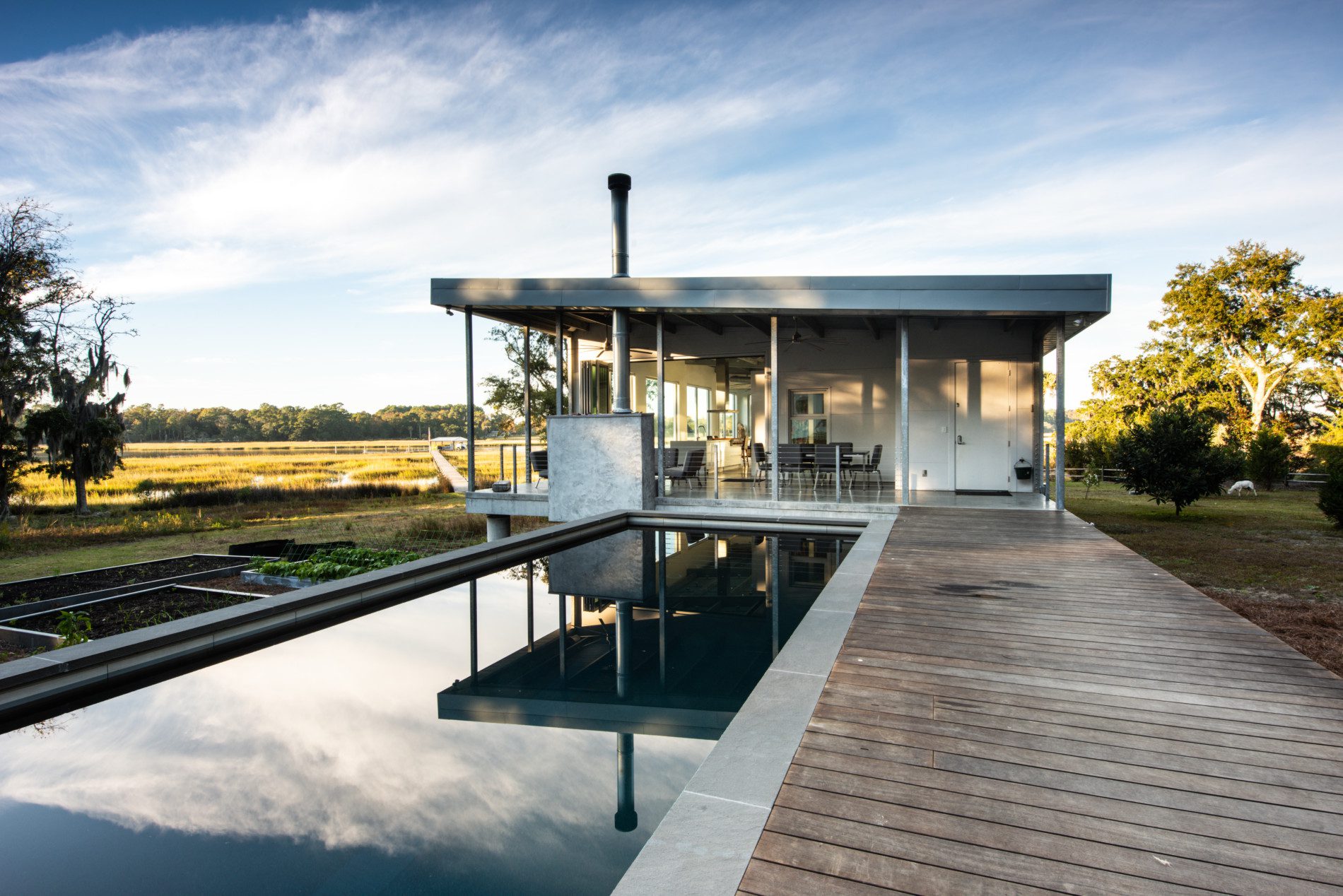 Main House, Guest House + Garage in Charleston, South Carolina on the Waterfront near Kiawah Island. FEMA Flood Zone + Hurricane Rated Custom Home With a growing family, our client reached out to EcoSteel to build a custom prefabricated home that was designed with non-traditional building materials. With the help of Woollen Studios, EcoSteel created an all steel home that…
