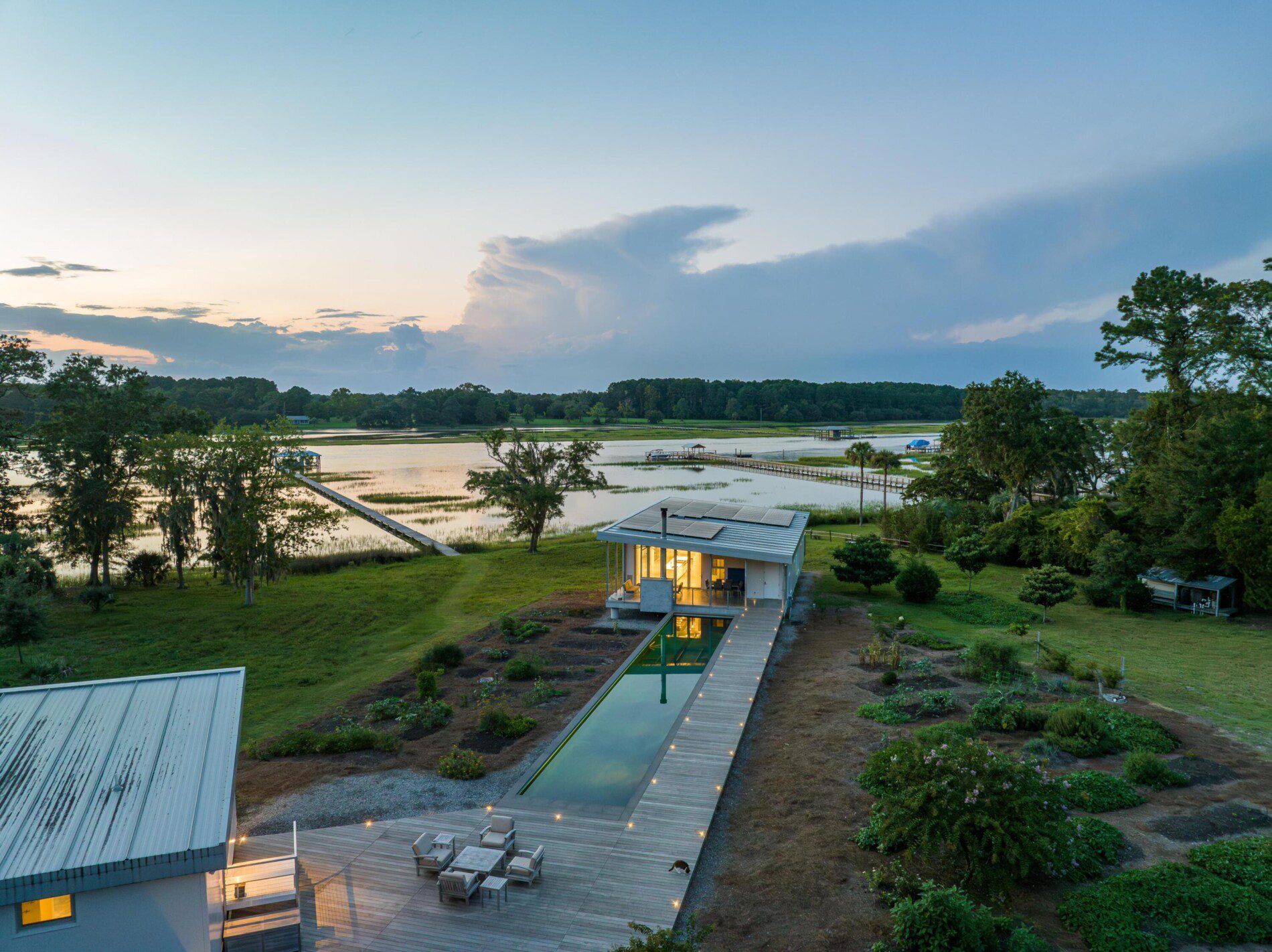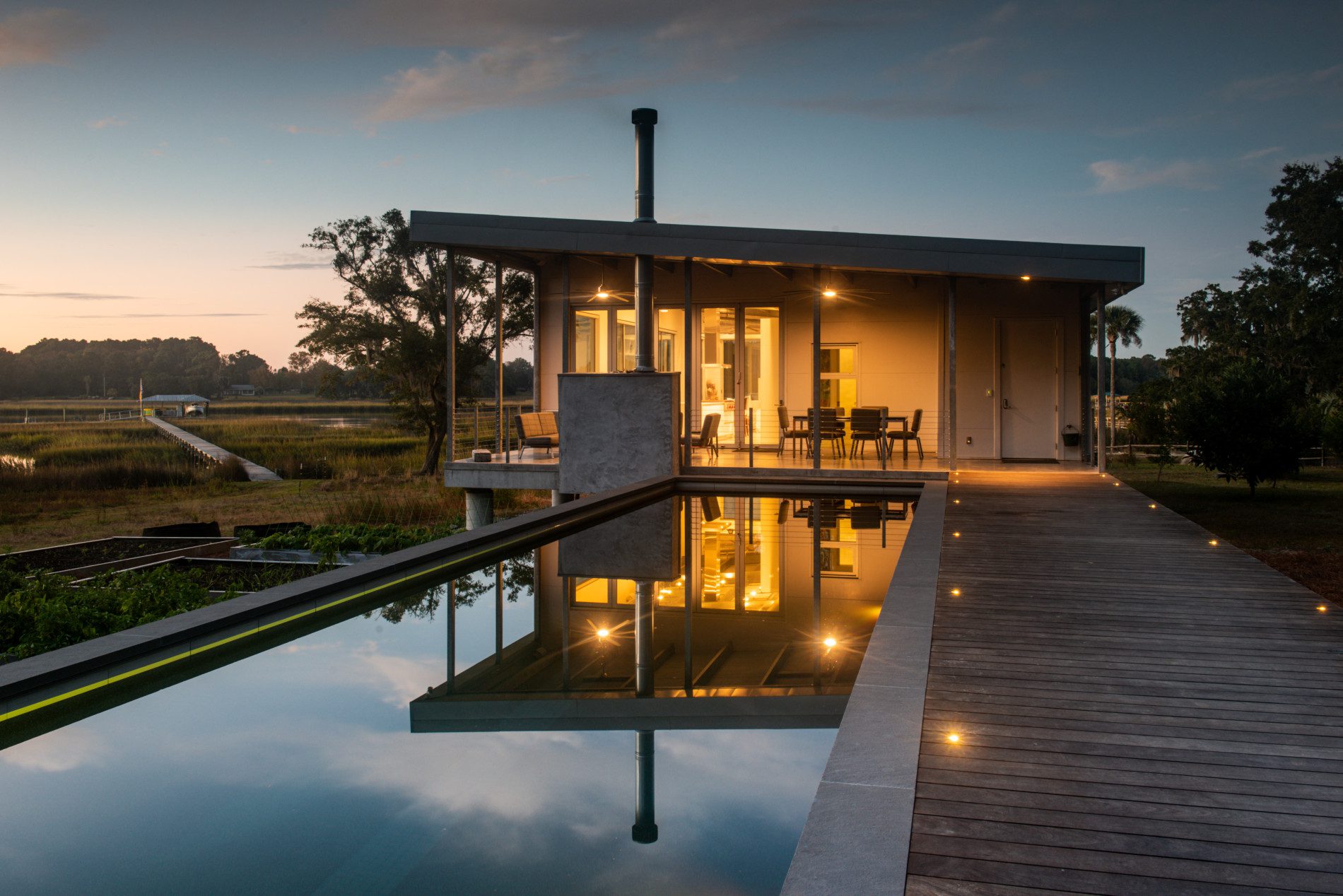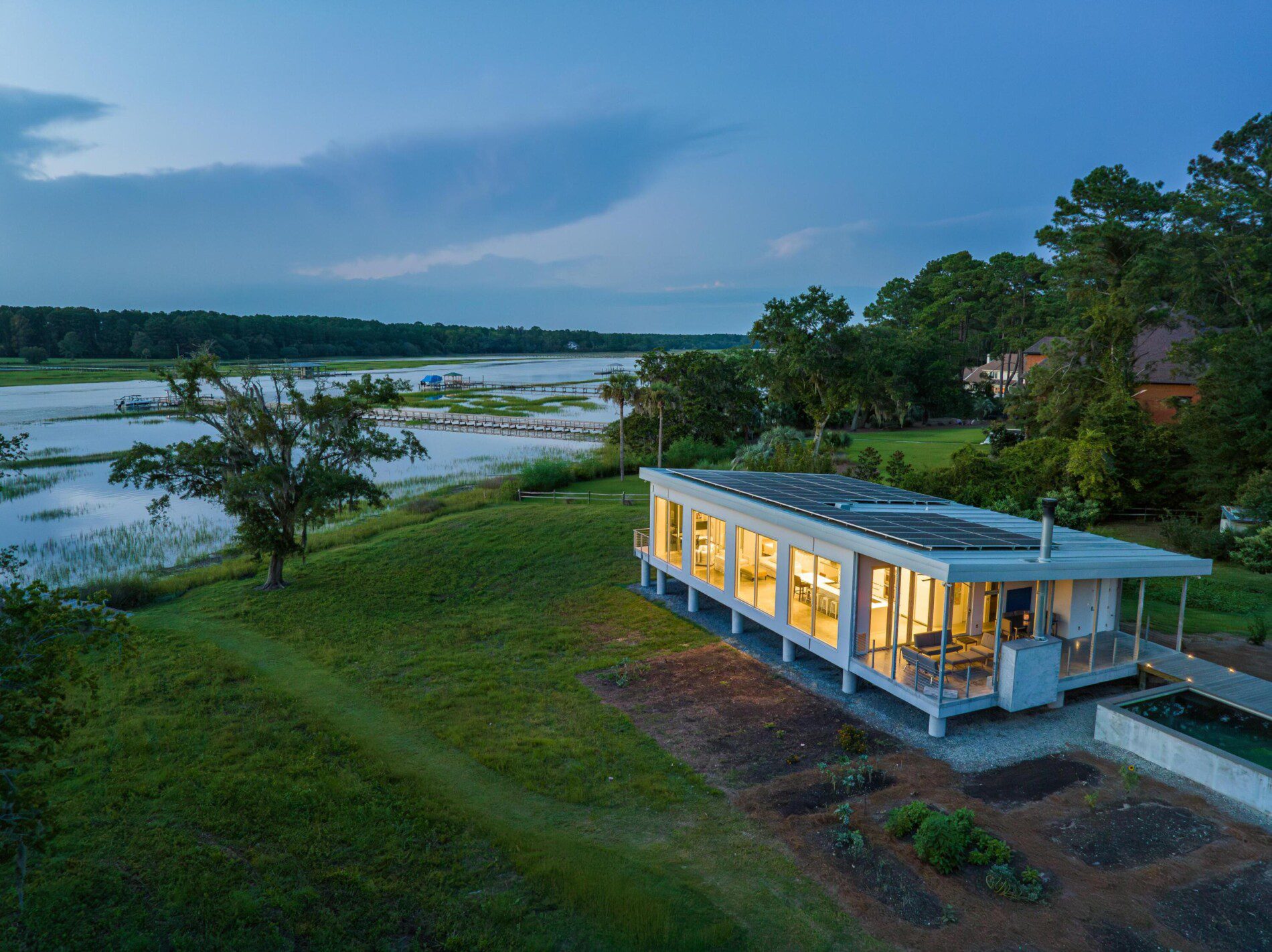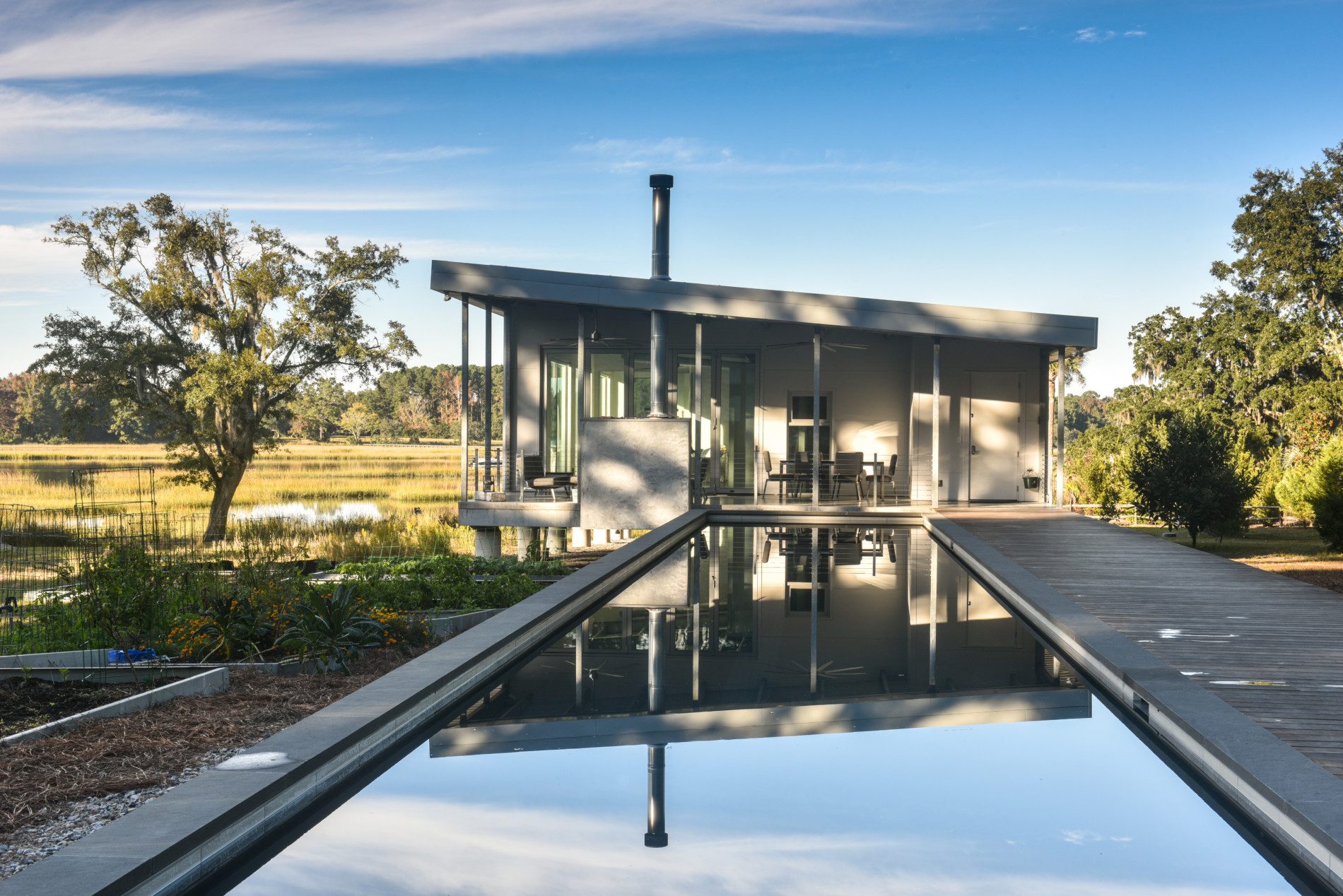 Main House, Guest House + Garage in Charleston, South Carolina on the Waterfront near Kiawah Island. FEMA Flood Zone + Hurricane Rated Custom Home With a growing family, our client reached out to EcoSteel to build a custom prefabricated home that was designed with non-traditional building materials. With the help of Woollen Studios, EcoSteel created an all steel home that…