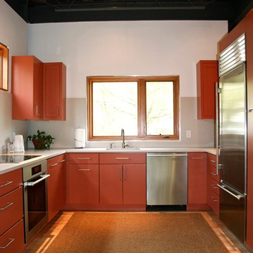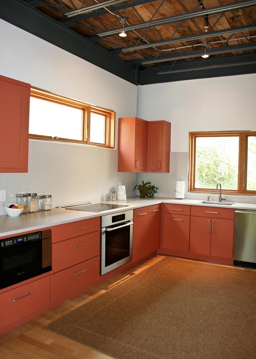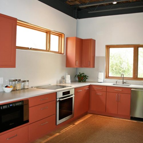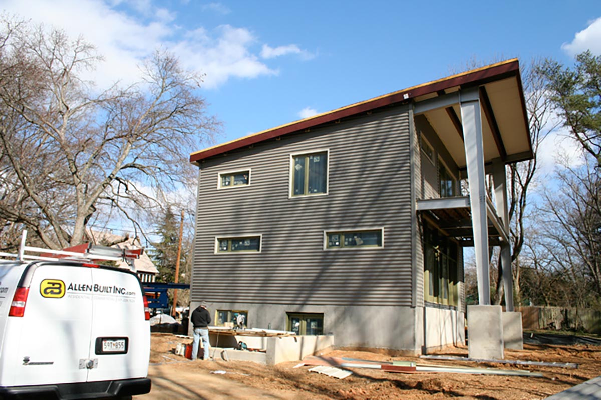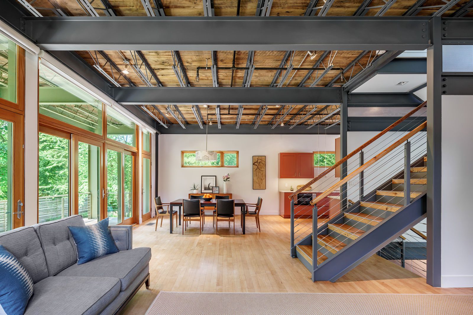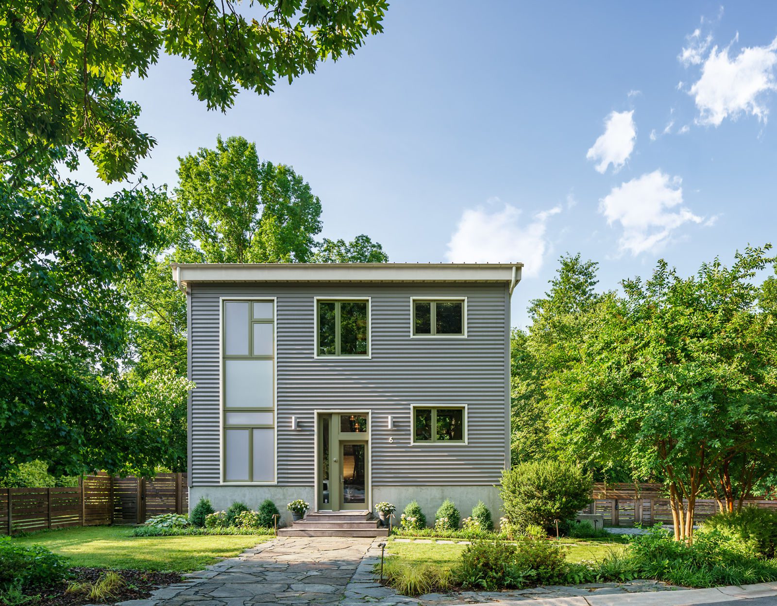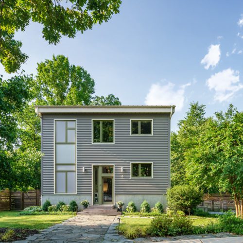 This prefabricated industrial style home is the personal home of the project’s general contractor! One of the main objectives of this build was to maximize the interior space on the 30’ by 30’ site footprint. Architect Greg LaVardera designed the home with an open-spaced concept in mind to take advantage of the space and the industrialized style of the home.…