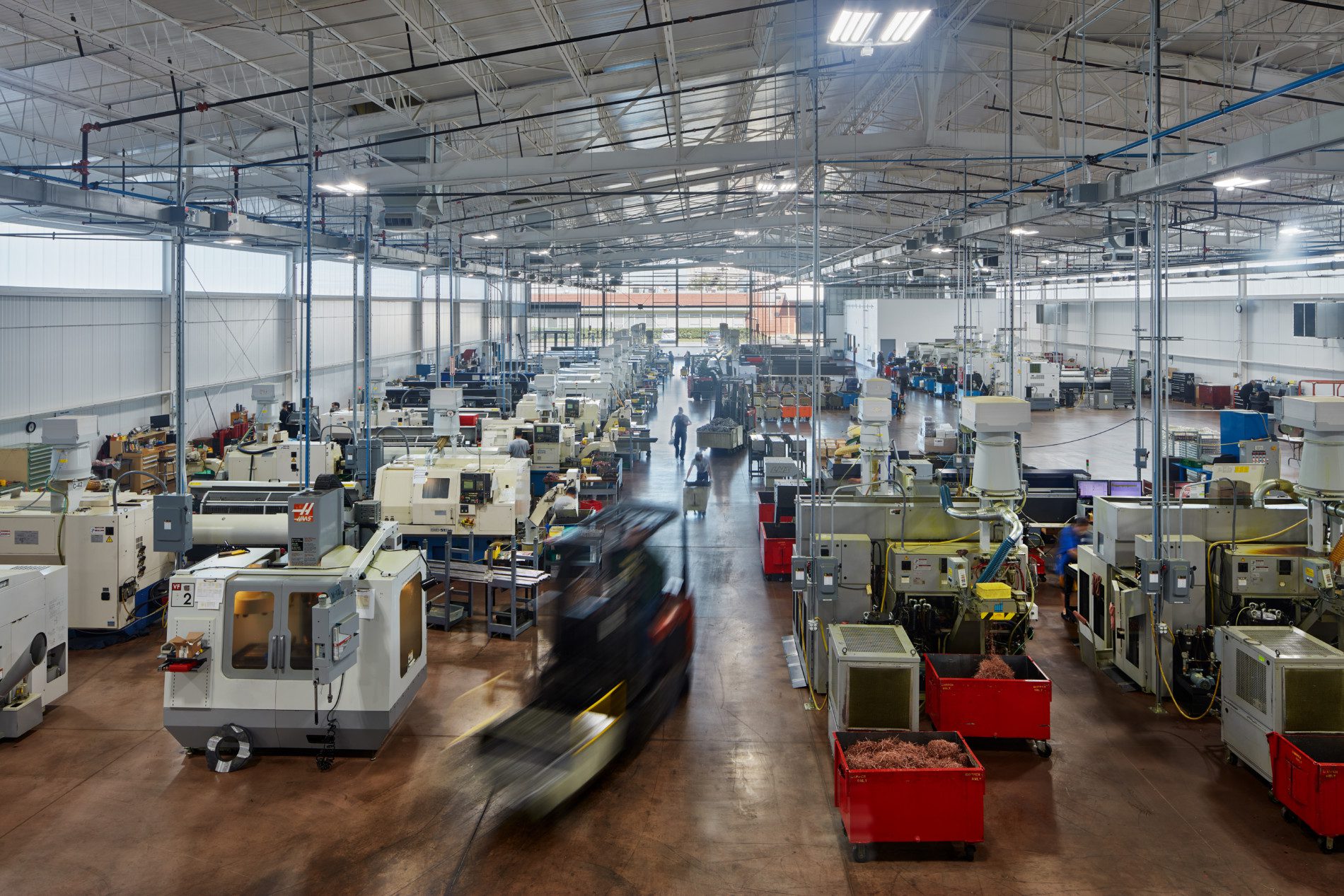 Wide-open spaces for equipment, assembly lines, and logistics.