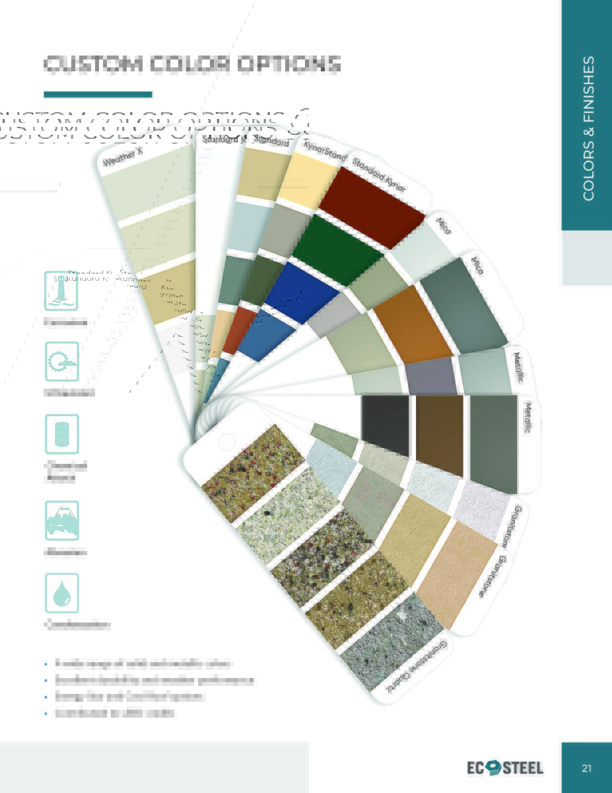 EcoSteel building systems come in a variety of shapes and sizes, but at their core they all utilize a custom engineered structural steel frame and a high-performance insulated shell. From sub-zero temperatures to dry heat or high humidity, Mother Nature continually tests the limits of building envelopes. Products from EcoSteel are specifically engineered to secure the interior’s climate regardless of exterior weather conditions.