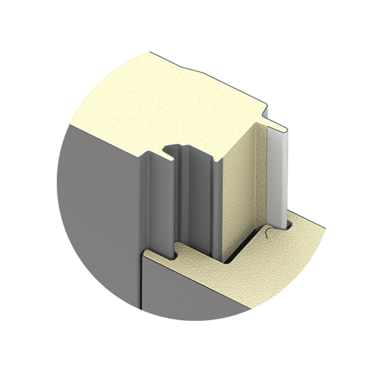 EcoSteel panels are comprised of an advanced urethane core* that is injected between two pre-finished steel facings, forming a single, all- in-one unit. The result is the most thermally efficient panel available. Wall panels also have a specially formed side joint that permits the hidden application of sealant within recessed grooves, creating an impenetrable water and vapor seal that protects your building against extreme weather.