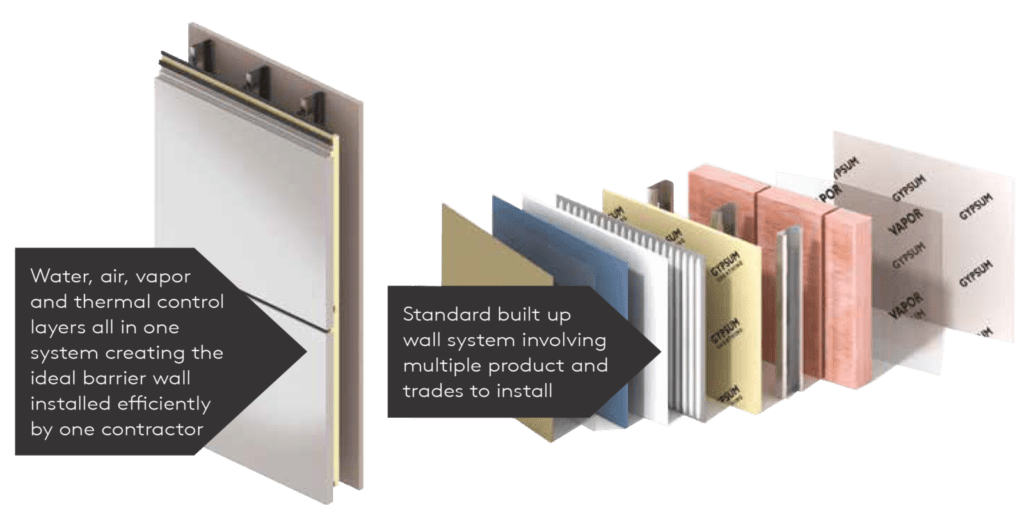 Offering superior strength and durability across their lifecycle, Insulated Metal Panels are designed as a long-term building solution. Their consistent, all-in-one air and water barrier design makes them simple to install, which can expedite the project build and minimize schedule delays.